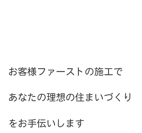 どんなことでも対応します弊社ではお客様のご要望に応え、お客様を笑顔にしたいという気持ちを一番大切にしています。住宅・店舗の事でなにかお悩みでしたらご相談などは無料で私達がしっかりとご対応させて頂きますので、先ずはあまり考えすぎすお問い合わせお待ちしております!